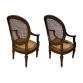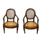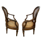 Par de cadeiras de braço executadas em nogueira - assento e encosto de palhinha - Itália sec. XVIII/XIX - 56 x 58 x 99 cm (Uma delas necessita restauro)