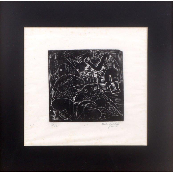 Oswaldo Goeldi - Pescador - xilogravura - 1/12 - ass. cid - c. 1929 - obra dessa edição reproduzida no livro Oswaldo Goeldi na Coleção Hermann Kummerly pg. 190 - 20x20 cm.