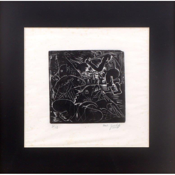 Xilogravura s/ papel arroz16.5 x 15.5 cmass. cid e no cie em alemão