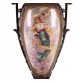 Ânfora de porcelana esmaltada em azul cobalto com reservas representando cenas românticas. manufatura Sevres. França Sec XIX - 94 cm alt. 30 x 20 cm. (No estado)
