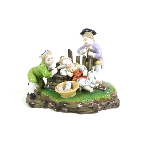 Grupo escultórico em porcelana - Manufatura Hochst - (1746-1798) - A fábrica em Höchst foi fundada em 1746 e foi apoiada pelo Eleitor de Mainz. foi fechado em 1796. 13 cm alt, 17 x 13 cm.