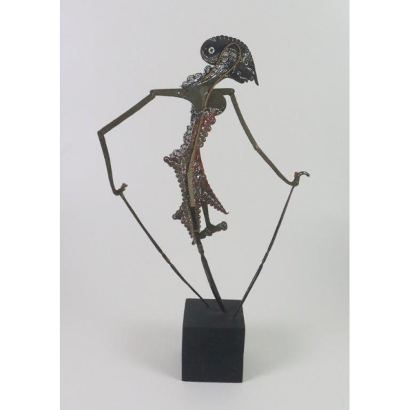 Teatro de Sombras - 44 cm alt. Wayang é uma palavra javanesa para determinados tipos de teatro de fantoche (teatro de marionetes) e o termo também pode designar o próprio boneco de fantoche. Essas apresentações de teatro de sombras com fantoches são acompanhadas por uma orquestra de gamelão em Java e pelo gênero musical wayang em Bali, ilhas da Indonésia. (No estado)