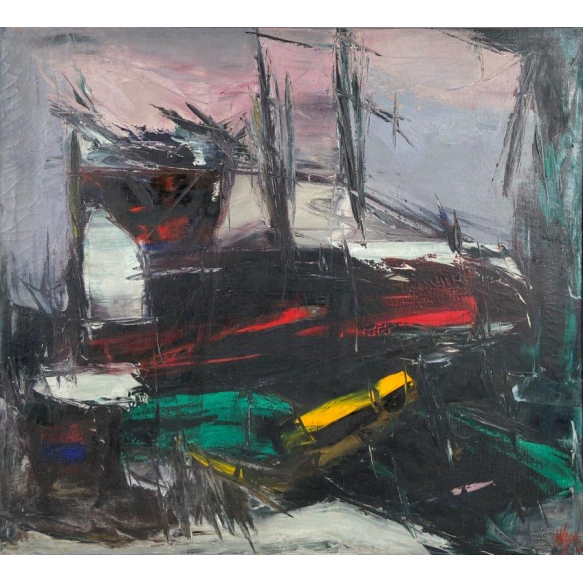 WEGA NERY (1912–2007) – Composição abstrata. Óleo sobre tela, datado de 1967. Pintora, desenhista, poeta e professora brasileira, ligada ao Grupo Guanabara e ao Atelier-Abstração de Samson Flexor, com produção abstrata de tendência geométrica, participação em diversas edições da Bienal Internacional de São Paulo e presença em acervos e exposições institucionais de destaque. Ass. CID. Dimensões: 72 × 80 cm.