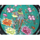 Belo prato em porcelana oriental, com rica decoração em esmalte na parte central decorado com dois faisões rodeados por flores, e borda escurecida. 28 cm diâm.