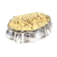 Bela caixa de rapé em prata de lei portuguesa 833, contraste águia prateiro David Ferreira, com tampa em fino trabalho de marfim decorado com figuras. 3 x 9 x 5 cm.
