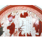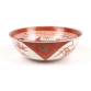 Elegante tijela de porcelana japonesa Kutani, ricamente decorada em esmalte vermelho ferro (akae), com cenas minuciosas representando sábios e estudiosos em um ambiente cerimonial, provavelmente uma reunião de monges ou eruditos budistas em torno de pergaminhos. O interior da peça é emoldurado por uma borda com padrão grego (meandro) e detalhes dourados.A parte externa alterna reservas triangulares com ramos de bambu pintados à mão e áreas texturizadas com espirais douradas sobre fundo vermelho. A base apresenta o selo da manufatura Kutani com a inscrição “Dai Nippon Kutani”, indicando produção voltada para exportação no final do Período Meiji ou início do Taisho (c.1890-1920). O esmalte e as pinceladas demonstram grande refinamento técnico, típico das peças produzidas para o mercado ocidental. Pequenos desgastes compatíveis com a idade - Japão - 8 x 23 cm