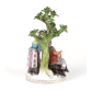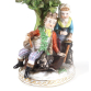 Dresden, grupo escultorico em porcelana alemã esmaltada representando casal, uma camponesa e um lenhador, com rica pintura em esmalte e filetes dourado na base. 18 cm alt.(Necessita Restauro).