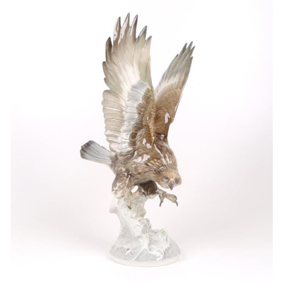 Hutschenreuther selb, imponente escultura em porcelana alemã representando “Ave de rapina” (provavelmente uma águia-real ou um falcão). 42cm alt x 20cm larg.