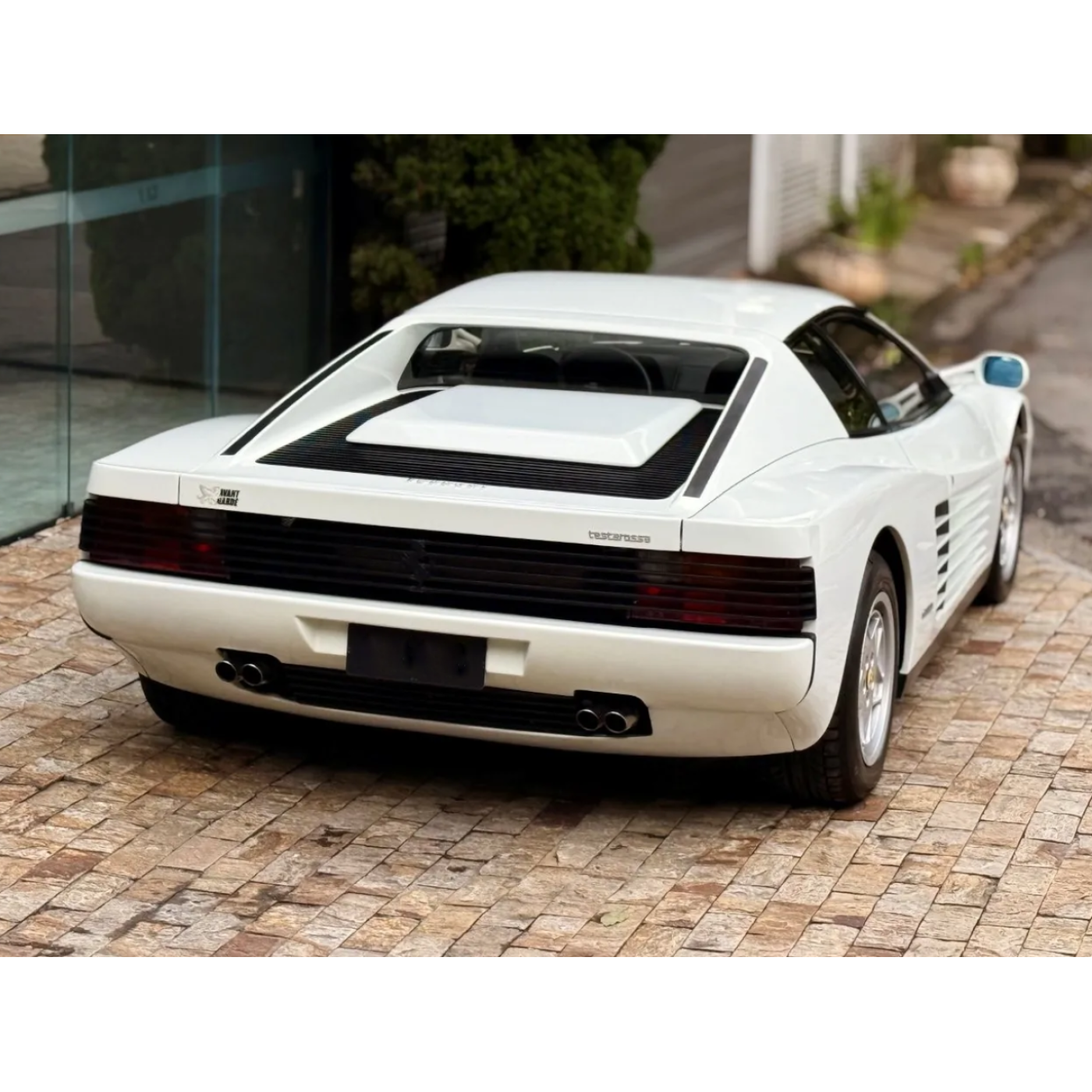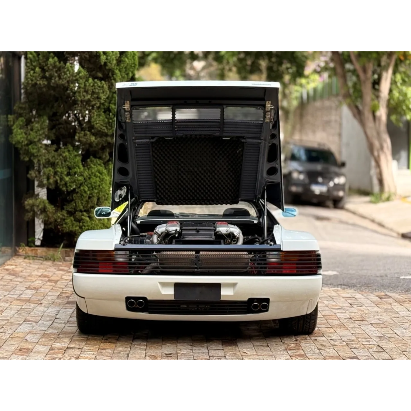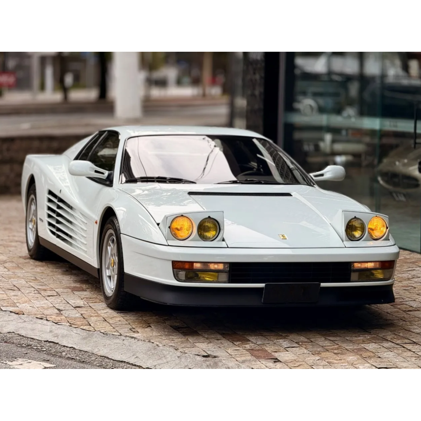 Configuração icônica Ícone absoluto dos anos 80: baixa, larga e com desenho Pininfarina marcado pelas tomadas de ar laterais. Motor V12 plano (180°) 4.9L de 390 cv, cárter seco, câmbio manual de 5 marchas e tração traseira. Acelera de 0–100 km/h em ~5,8 s e chega perto dos 290 km/h. Unidade importada da renomada Gallery Aaldering (Holanda), rara versão francesa homologada para circular em Mônaco. Revisada neste ano e com apenas 43.000 km — a configuração eternizada por Miami Vice. Motor V12 4.9L (180°) cárter seco — 390 cv @ 6.300 rpm Câmbio manual de 5 marchas Tração traseira; centro de gravidade baixo 0–100 km/h: ~5,8 s | Vel. máx.: ~290 km/h Versão francesa, homologada para Mônaco Importada da Gallery Aaldering (uma das mais respeitadas da Europa) Revisada em 2025 43.000 km Tomadas de ar laterais “strakes” (design Pininfarina, referência dos anos 80)