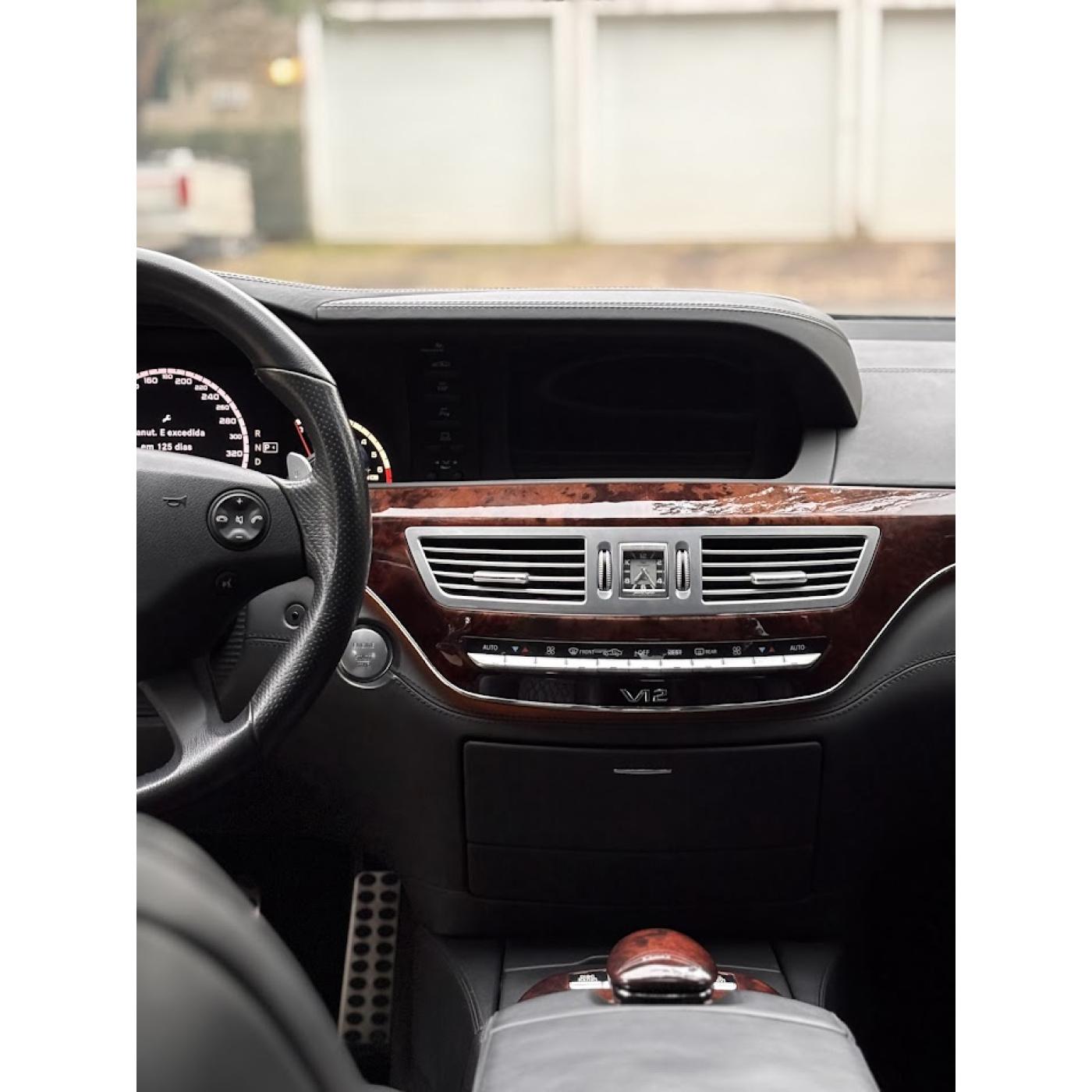 Preto sólido com interior preto/antracite e acabamento em couro e nogueira Versão alongada, não-blindado Segundo dono, importação oficial Motor V12 6.0 bi-turbo com 612 cv de fábrica Câmbio automático 5 marchas Suspensão pneumática adaptativa (active body control) Climatizador de quatro zonas Bancos multicontorno com controle de climatização Persianas elétricas nas portas traseiras Geladeira no apoio de braço traseiro Night view assist Park assist Teto solar de cristal Sistema de áudio premium Harman Kardon Partida sem chave - Keyless Faróis bi-xenon adaptativos Rodas aro 19" com pneus Michelin Spoiler e saia AMG Importação oficial Segundo dono 155.000 km (de estrada) Manual do proprietário Chave reserva Placa final 9