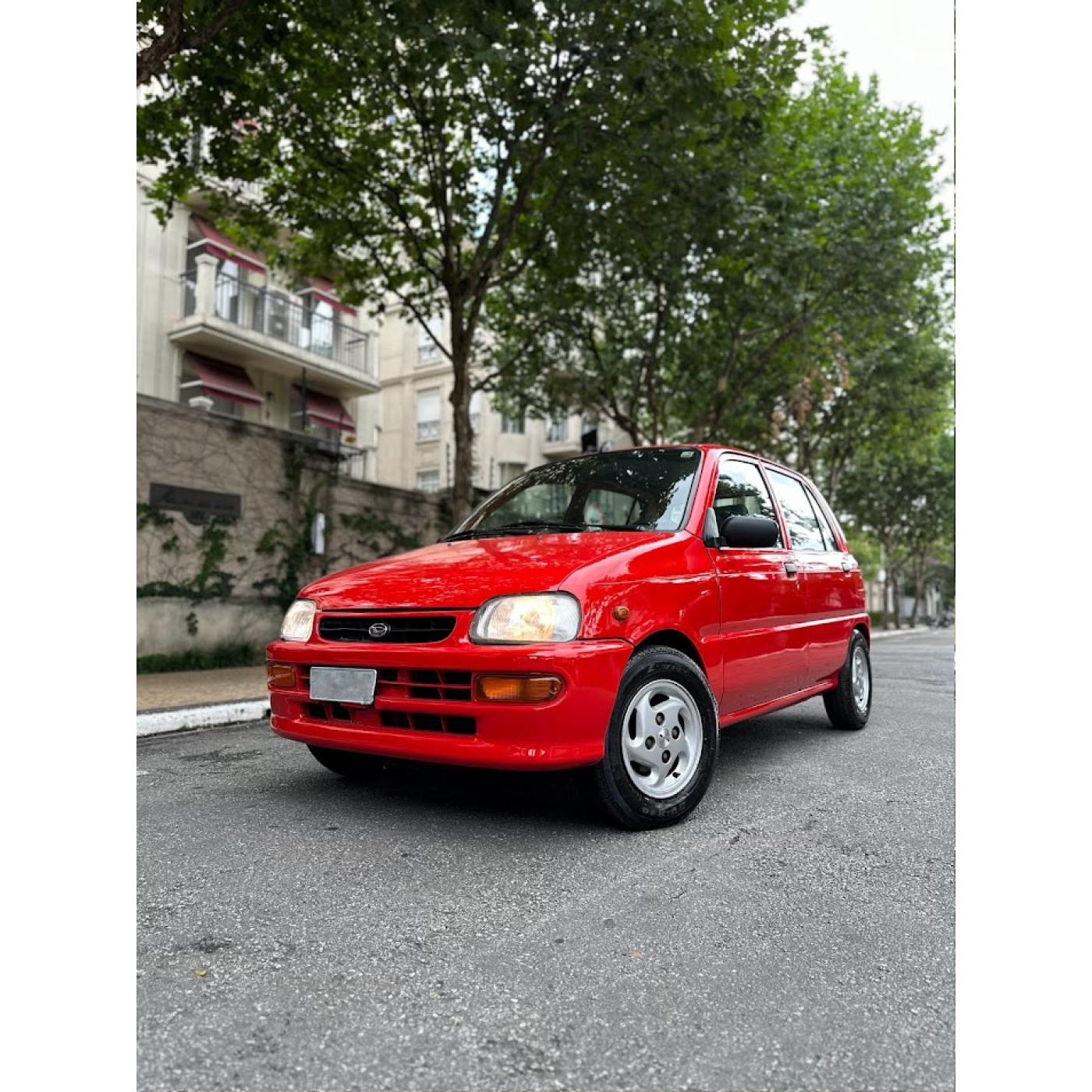 Vermelho, 4 portas, todo original Um dos poucos kei car japonês vendido no Brasil Último ano de importação Marca japonesa do grupo Toyota Motor 850 de três cilindros e cambio manual Radio (MP3 e pendrive) Rodas liga leve originais Conta-giros Forração original Vidros originais Placa final 5 Isento de IPVA