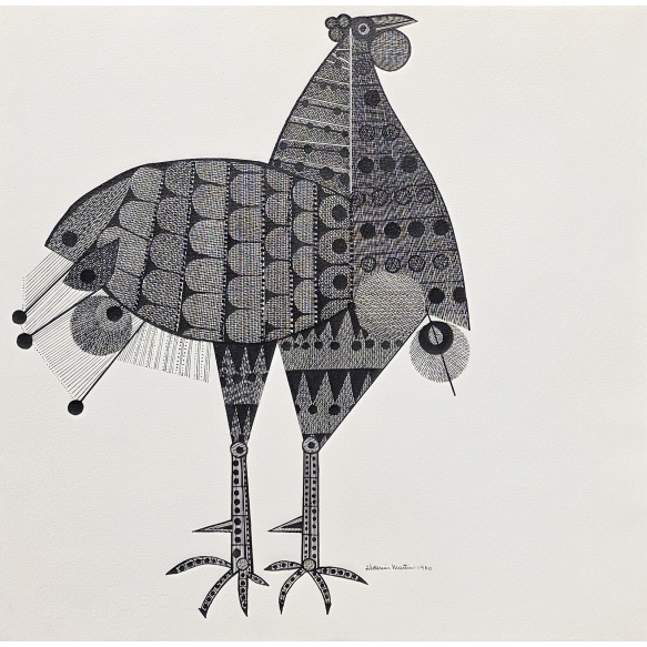 Aldemir Martins - Galo. Nanquim sobre papel, 34,5x35 cm, 1960, A.C.I.D. e V. Com moldura e dedicatória para Córa no verso. Com certificado de autenticidade assinado pelo próprio Aldemir