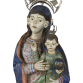Nossa Senhora Com Menino. Madeira Policromada - India Portuguesa, século XVI/XVII. Escultura de madeira policromada representando Nossa Senhora com Menino. Ela de pé e descalça sobre nuvem, cabelos longos encobertos por manto azul de interior rosé, com delicados movimentos, que se alonga até os pés. Túnica verde profusamente ornada com elementos florais. Rosto pulcro, olhar fixo no horizonte, segurando com ambas as mãos Menino Jesus com esfera armilar na mão esquerda e a direita em posição de benção; 93 cm de altura total, com resplendor de 12 cm de altura. Apresenta rachadura vertical.