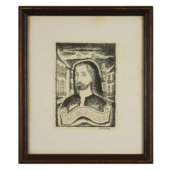 Guignard, Alberto da Veiga. Tomas Antonio Gonzaga. Reprodução litográfica, 19,5 cm x 14,5 cm. Assinado embaixo à direita: Guignard. Origem: espólio de Cárbia Sabatel Bourroul e José Celestino Monteiro de Barros Bourroul.