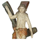 São Sebastião. Imagem de Madeira - Brasil, século XIX. São Sebastião. Imagem de madeira esculpida e policromada representando o Santo seminu com pano vermelho encobrindo suas partes íntimas, de pé e amarrado em tronco sobre rochas, entalhados de forma naturalista; 26,6 cm de altura total. Estão ausentes os atributos desta iconografia, as flechas. Origem: espólio de Edgar Clat Gaspar.
