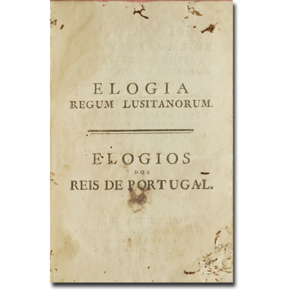 António Pereira de Figueiredo. Elogia Regum Lusitanorum - Elogios dos Reis de Portugal. 1785 - 328 pp + 40 pp Novos Testemunhos da Milagrosa Apparição de Christo Senhor Nosso a El-Rei D. Affonso Henriquesb antes da Famosa Batalha do Campo d'Ourique, 1786 - 40 pp. 14 cm x 20 cm de altura. Capa dura e ex-librisde Augusto Pretes. Alguma páginas furadas por bichos, sem prejuízo da leitura.