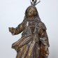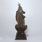 Nossa Senhora do Rosário - Brasil, século XVIII. Imagem de madeira esculpida e policromada, com vestígios de douração, representando Nossa Senhora com cabelo parcialmente caindo sobre os ombros e coberto por véu. Bom e movimentado panejamento, braço direito flexionado com a mão em posição para sustentação de rosário e o esquerdo com mão espalmada sob manto para apoio do Menino Jesus, sentado. Flutuando sobre nuvens com quatro cabeças de anjos e base retangular escalonada; 50 cm de altura total, com a coroa de prata de 5 cm de altura. Estão ausentes os atributos desta iconografia, O Menino Jesus e o rosário. Apresenta pequenas perdas na policromia. Origem: espólio de Cárbia Sabatel Bourroul e José Celestino Monteiro de Barros Bourroul.