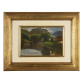 Autoria não Identificada. Paisagem com Lago. Óleo sobre tela, 19,5 cm x 29,5 cm. Assinado embaixo à direita: ilegível.