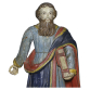 São Paulo. Brasil, século XVIII. Imagem de madeira esculpida e policromada representando São Paulo de pé sobre base facetada. Hábito de linhas retas com ligeiros dapreados, segurando livro com a mão esquerda postado entre o braço e o corpo; 40,5 cm de altura total. Está ausente um dos atributos desta Imagem, a espada. A mão direita esta colada. Origem: espólio de Edgar Clat Gaspar.
