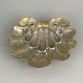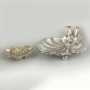 Fruteira e porta-petiscos de metal prateado - Europa, século XX. Fruteira de bronze e porta-petiscos de metal conchóides e três pés de bola, espessurado à prata; 37,5 cm e 19 cm de comprimentos, 35 cm e 19,5 cm de larguras 16,5 cm e 5 cm de alturas, respectivamente. No reverso da base da fruteira marca de identificação: Due Sorelle. Origem: espólio de Cárbia Sabatel Bourroul e José Celestino Monteiro de Barros Bourroul.