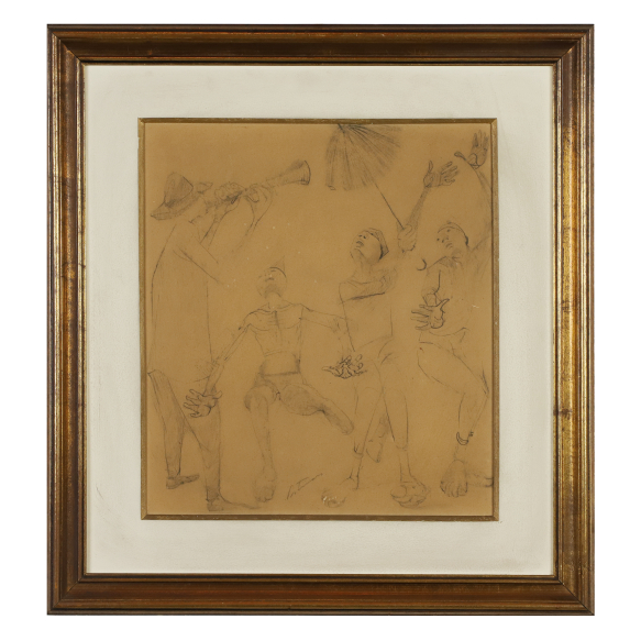 Portinari, Cândido. Roda de Frevo. Reprodução fotomecânica, 31,5 cm x 29 cm. Assinado embaixo ao centro: Portinari. Origem: espólio de Cárbia Sabatel Bourroul e José Celestino Monteiro de Barros Bourroul.