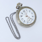 Relógio de bolso F. E. L.E. Roskoff - Suiça, século XX. Relógio de bolso, também conhecido como de algibeira, à corda . Formato circular, caixa metálica, mostrador esmaltado de branco com marcador de segundos e inscrição F.E. Roskoff / Patente / 18632; números em algarismos árabicos em duas cores, preto AM (ante meridiem) e azul PM (Post meridiem). Inscrições, todas em relevos: Internamente, em seu reverso, F.E. Roskoff sobre paisagem; centralizadas por 6 medalhas, três de cada lado, Expositions / Universelles / Paris 1900 / Liege 1905 / Milan 1906. Na parte interior da tampa, 76735, na exterior, Logomarca do fabricante L.E. Roskoff, locomotiva ladeada pela inscrição Veritable Montre Chemin de Fer; inscrição que se repete na aba de sua caixa; 5,1 cm de diâmetro e 7,1 cm com anel de sustentação de corrente metálica, que acompanha o relógio. Funcionando. Apresenta pequena perda de esmalte, na parte central do mostrador, assim como pequeno trincado, iniciado na junção dos ponteiros e extendendo-se até o centro do ponteiro de segundos.