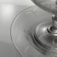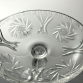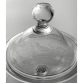 Compoteira e par de pratos para doces de festa - Europa, século XX. Conjunto de três peças de cristal incolor e transparente, sendo: uma compoteira de corpo semiesférico encerrado por tampo almofadado com puxador em bola e présentoir covo. Decorada em seu todo por gravação a ácido com ramagens, pássaros e aba com faixa florida, à maneira da Cristalerie Saint Louis, 23 cm de altura total e 14,5 cm de diâmetro de boca. Par de pratos circulares e covos para doces de festa, ornados com lapidação em cata-vento e estrelada, encimando haste em balaústre facetada e base circular, 16 cm de altura total e 18 cm de diâmetro de boca. Origem: espólio de Cárbia Sabatel Bourroul e José Celestino Monteiro de Barros Bourroul.