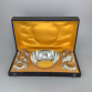 Dois serviços para sorvete - Brasil, século XX. Dois serviços para sorvete de metal espessurado de prata, dito prata 90, acondicionados cada um em seu estojo, compostos de: seis taças sobre três pés de bola com decoração em relevos, e seis colheres com mesma decoração. Seis bols circulares e lisos ladeando, três a três, bol maior com mesmo formato e decoração. Sobre as peças marcas de identificação dos fabricantes: Eberle e Wolf, respectivamente. Origem: espólio de Cárbia Sabatel Bourroul e José Celestino Monteiro de Barros Bourroul.