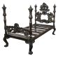 Excepcional cama D. José I, dita de viúvo, de jacarandá escuro. Cabeceira, pés e montantes ricamente lavrados; estrado com 104 cm x 205 cm; 150 cm de altura da cabeceira. Brasil, séc. XVIII. Consta ter pertencido ao Conde Prates.