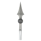 Vara de palio - Brasil, século XX. Vara de palio de metal prateado. Haste cilíndrica, com gancho e sua parte superior para sustentação do pálio, terminado em esfera sob ponta de lança; 216 cm de comprimento. Origem: espólio de Cárbia Sabatel Bourroul e José Celestino Monteiro de Barros Bourroul.