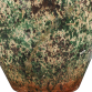 Ãnfora. Portugal, Século XIX. Ânfora de faiança. Corpo bojudo e volumoso com duas alças verticais de secção arredondada. Gargalo curto, levemente côncavo, terminando em borda revirada. Superfície integralmente recoberta por vidrado espesso em tons de verde sobre fundo terroso, 61 cm de altura total e 45,5 cm, de alça a alça. Apresenta trincado que, muitto provavelmente, afetou somente o vidrado. Restaurado profissionalmente, inclusive com utilização de grampos estabilizadores. Provavelmente proveniente da região do Alentejo ou norte de Portugal.