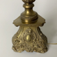 Par de tocheiros de latão com douração - Brasil, século XX. Par de tocheiros de latão, com douração, ornado em relevos com volutas, perolados e elementos repetitivos. Fuste em balaústre, sobre base trípode, terminada em elemento circular, como se açucena fosse, de onde sai haste cilíndrica, com regulagem de altura, para sustentação de suporte para duas lâmpadas e de cúpula de tecido bege; 94 cm de altura total. Apresenta perda de douração em algumas de suas partes. Origem: espólio de Cárbia Sabatel Bourroul e José Celestino Monteiro de Barros Bourroul.