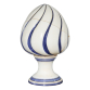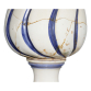 Pinha de Faiança. Provavelmente Portugal, Século XX. Pinha de faiança policromada e esmaltada decorada com faixas sinuosas, azul e amarelo; apoiada sobre base em balaústre, terminada em faixas concêntricas. Provavelmente oriunda da Região de Vila Nova de Gaia; 65 cm de altura total. Normalmente, por ficar exposta em áreas externas, apresenta marcas de ação do tempo, degaste no esmalte, trincas, colagens e algumas perdas de matéria, como a grande maioria delas.