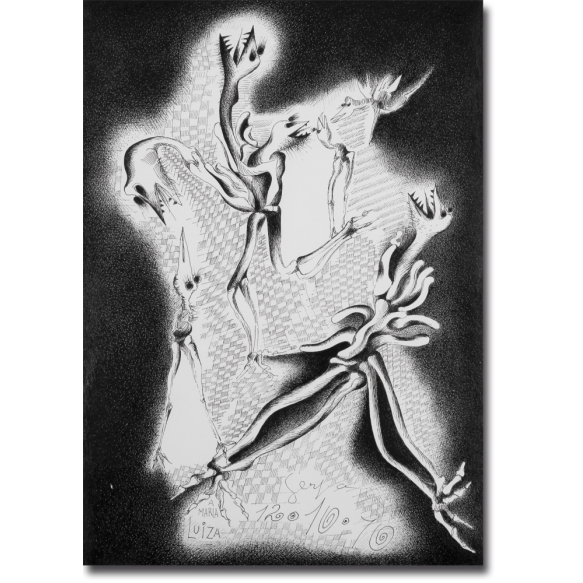 Ivan Serpa. Bichos. Reprodução, 35 cm x 25 cm. Assinado, datado e dedicado embaixo: Serpa / 12.10.70 / A / Maria / Luiza.