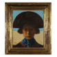 Candido Portinari. Cangaceiro. Óleo sobre tela, 55,5 cm x 46,5 cm. Assinado e datado embaixo à esquerda: Portinari 1952. Exposições, conforme descrito no Catálogo Raisonné: - 1970. Cem Obras Primas de Portinari. Museu de Arte de São Paulo Assis Chateaubriand, São Paulo. - 1998. Portinari: painéis, pinturas, desenhos, gravuras. Bolsa de valores do Rio de Janeiro, Rio de Janeiro. Registrado no Projeto Portinari FCO 3411. Reproduzido e descrito no Catálogo Raisonne do artista à página 362, volume III, nº 3069.