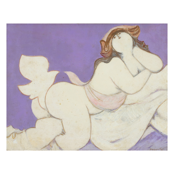 Milton da Costa. Vênus e Pássaro. Óleo sobre tela, 19 cm x 24 cm. Assinado embaixo à direita: D acosta. No reverso inscrição: "Vênus e Pássaro / M. D acosta / 67 - 69 / 19 x 24. Etiqueta da Bolsa de Arte do Rio de Janeiro Nº 0246.