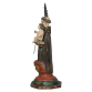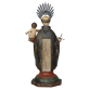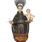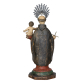 Santo Antonio, do Pau Oco - Brasil, Século XVIII. Imagem três quartos de corpo de madeira entalhada e policromada, representando Santo Antonio em sua ionografia tradicional, hábito franciscano preto, com Menino Jesus sobre livro e cavidade circular no peito, destinada a relicário. Na parte posterior cavidade vertical, encerrada por tampa móvel. O todo sobre peanha almofadada e escalonada e base octogonal; 36,2 cm de altura total, com o replendor metálico 5 cm. Em substituição ao lirio, seu atributo natural, encontra-se uma cruz metálica. Imagens do pau oco, no Brasil Colonial, eram usadas em muitas ocaiões para camuflagem de valores, ouro, pedras preciosas, dentre outros. Por serem imagens sacras não despertavam suspeitas, facilitando a fuga e não pagamento dos pesados impostos cobrados pela Coroa Portuguesa o "Quinto", 20% sobre a extração mineral, transitando normalmente, quer no interior do país ou quando enviadas para fora. Em algumas ocasiões também utilizadas, por famílias abastadas, como cofre.