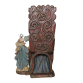 Sant'Ana Mestra - Brasil, século XIX. Grupo escultórico de madeira policromada representando Sant'Ana Mestra ensinando a Menina a ler. Apresenta- se sentada em trono, entalhados em um só bloco, com espaldar elevado e ornado em ambos os lados com volutas em relevos. Braço esquerdo estendido com a mão apoiada sobre a cabeça da Menina, que se encontra de pé à Sua esquerda trajando túnica bege com ornato floral, e mão direita segurando livro. Expressão séria e lábios entreabertos, como se falando estivesse. Ambas com véu encobrindo os cabelos, longo manto verde e vermelho de tonalidades diferentes, movimentado e com intensos pregueados. O todo sobre base retangular de extremidades arredondadas. Resplendor e coroa de prata; 47,5 cm de comprimento, 31 cm de largura e 77 cm de altura total. Origem: espólio de Cárbia Sabatel Bourroul e José Celestino Monteiro de Barros Bourroul.