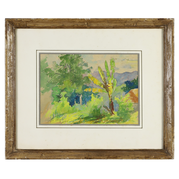 Hegle. Paisagem. Aquarela, 19,5 cm x 27 cm. Assinado e datado embaixo à esquerda: Hegle/ 1949. Origem: espólio de Cárbia Sabatel Bourroul e José Celestino Monteiro de Barros Bourroul.