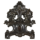 Excepcional cama D. José I, dita de viúvo, de jacarandá escuro. Cabeceira, pés e montantes ricamente lavrados; estrado com 104 cm x 205 cm; 150 cm de altura da cabeceira. Brasil, séc. XVIII. Consta ter pertencido ao Conde Prates.