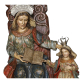 Sant'Ana Mestra - Brasil, século XIX. Grupo escultórico de madeira policromada representando Sant'Ana Mestra ensinando a Menina a ler. Apresenta-se sentada em trono, entalhados em um só bloco, com espaldar elevado e ornado em ambos os lados com volutas em relevos. Braço esquerdo estendido com a mão apoiada sobre a cabeça da Menina, que se encontra de pé à Sua esquerda trajando túnica bege com ornato floral, e mão direita segurando livro. Expressão séria e lábios entreabertos, como se falando estivesse. Ambas com véu encobrindo os cabelos, longo manto verde e vermelho de tonalidades diferentes, movimentado e com intensos pregueados. O todo sobre base retangular de extremidades arredondadas. Resplendor e coroa de prata; 47,5 cm de comprimento, 31 cm de largura e 77 cm de altura total. Origem: espólio de Cárbia Sabatel Bourroul e José Celestino Monteiro de Barros Bourroul.