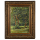 Antonio Mendonça, Higino (Escola Portuguesa). Bosque. Óleo sobre tela, 59,3 cm x 42,5 cm. Assinado embaixo à direita, parcialmente legível: Hig Mend. Origem: espólio de Cárbia Sabatel Bourroul e José Celestino Monteiro de Barros Bourroul.