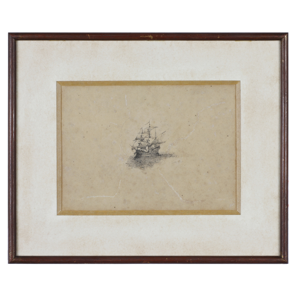 Castagneto, Giovanni. Caravela Portuguesa. Aguada e nanquim, 15 cm x 21,5 cm. Assinado e datado à direita: Castagneto 900. Origem: espólio de Cárbia Sabatel Bourroul e José Celestino Monteiro de Barros Bourroul.