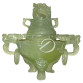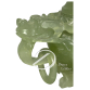 Incensário de jade esverdeado; corpo bojudo com relevos, alças laterais com argolas, tampa com pega zoomórfica, apoiado sobre três pés; 16 cm de altura. China, séc. XX.