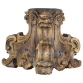 Base de tocheiro. Brasil, século XIX. Base trípode de tocheiro de madeira de lei, com entalhes e decoração característicos do Barroco Brasileiro; 55 cm de largura e 46,5 cm de altura total. Apresenta pequenas perdas na base de dois dos pés e marcas do tempo.