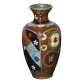 Pequeno Vaso Cloisonné. Japão, Era Meiji (1868–1912), c. 1880–1910. Pequeno vaso metálico, esmaltado e policromado com decoração de elementos fitomórficos cloisonné e aplicação de pigmentos de ouro. Corpo de quatro seções concêntricas à base circular e gargalo curto e acinturado; 11,7 cm de altura total.
