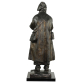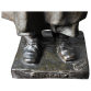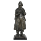 Ernesto Bazzaro. Pifferaio. Escultura de bronze patinado, representando figura masculina em pé trajando roupas de época, tocando flauta, assinada à direita da base "Bazzaro" e intitulada na parte frontal "Pifferaio"; 73 cm de altura. Itália, início séc. XX. c. 1915. Flauta apresentando colado.