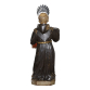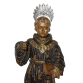 Santo Antonio - Brasil, século XVII. Imagem de madeira policromada e dourada representando o Santo em sua iconografia tradicional; de pé, calçando sandálias, segurando livro com a mão esquerda e à direita estendida para sustentação de uma cruz, trajando túnica marrom com rico e delicado planejamento e relevados dourados. Base retangular de cantos chanfrados; 66,5 cm de altura total, com o resplendor de prata de 6,5 cm de altura. Está ausente um dos atributos da Imagem, a cruz. Origem: espólio de Cárbia Sabatel Bourroul e José Celestino Monteiro de Barros Bourroul.