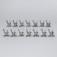Quatorze Portas-menu ou Marcadores de lugar. Peru, século XX. Conjunto de quatorze portas-menu ou marcadores de lugar, de prata 925 mm, modelados nas figuras de lhamas apoiadas sobre bases ovoides com marcas nos seus reversos, de origem e teor: Peru / 925; 2,8 cm de comprimento, 1,8 cm de largura e 3,4 cm de altura total. 170,9 gramas, de peso total. Insignificante variação nas alturas.