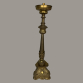 Par de tocheiros de latão com douração - Brasil, século XX. Par de tocheiros de latão, com douração, ornado em relevos com volutas, perolados e elementos repetitivos. Fuste em balaústre, sobre base trípode, terminada em elemento circular, como se açucena fosse, de onde sai haste cilíndrica, com regulagem de altura, para sustentação de suporte para duas lâmpadas e de cúpula de tecido bege; 94 cm de altura total. Apresenta perda de douração em algumas de suas partes. Origem: espólio de Cárbia Sabatel Bourroul e José Celestino Monteiro de Barros Bourroul.
